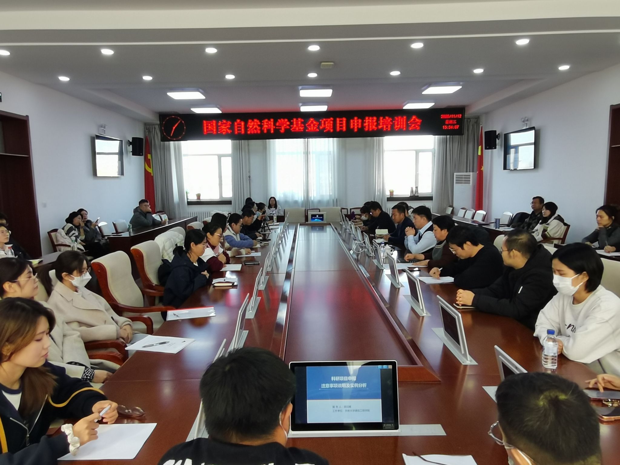 11月12日,科研处特邀请吉林大学唐敖庆领军教授、博士生导师胡云峰莅临我校,开展题为“科研项目申报注意事项及实例分析”的专题培训。培训会在办公楼410会议室举行,理工类各学院分管科研副院长、科研秘书及国家自然科学基金项目申报负责人等近40人参会,科研处处长孙艳红主持本次培训。