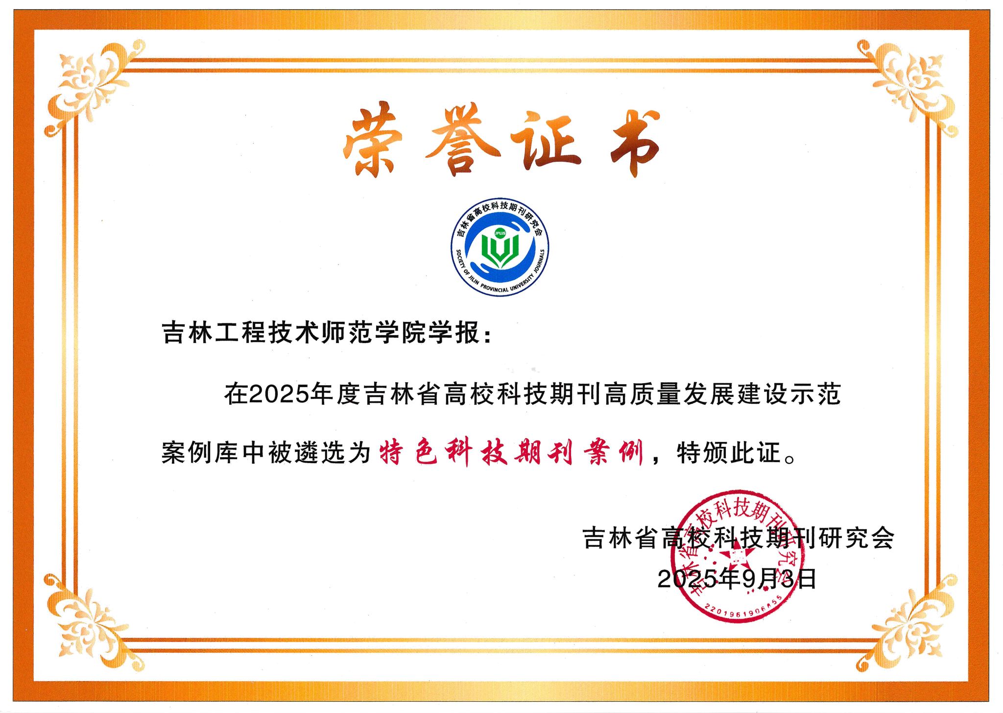 近日,由吉林省高校科技期刊研究会组织的“2025年度吉林省高校科技期刊高质量发展建设示范案例库•卓越/精品/优秀/特色/进步科技期刊案例”遴选活动落下帷幕。《吉林工程技术师范学院学报》获评特色科技期刊。